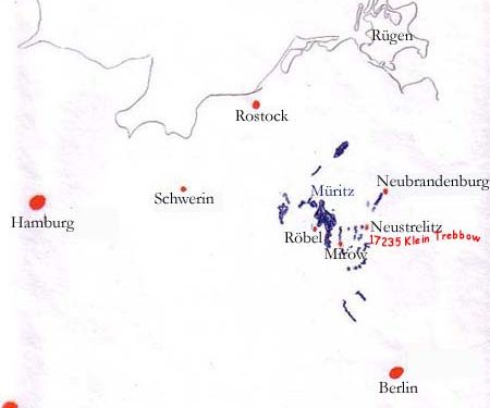 Bei Nutzung eines Navigationsgeräts geben Sie bitte als Postleitzahl 17235 oder als Stadt Neustrelitz ein, um eine Verwechslung mit dem Ort ‚Klein Trebbow‘ bei Schwerin zu vermeiden.